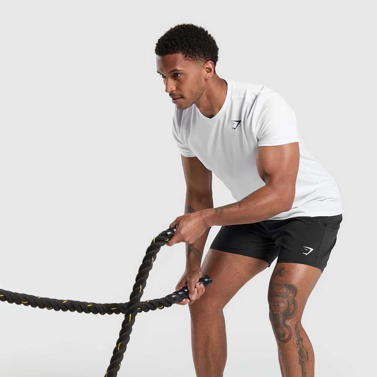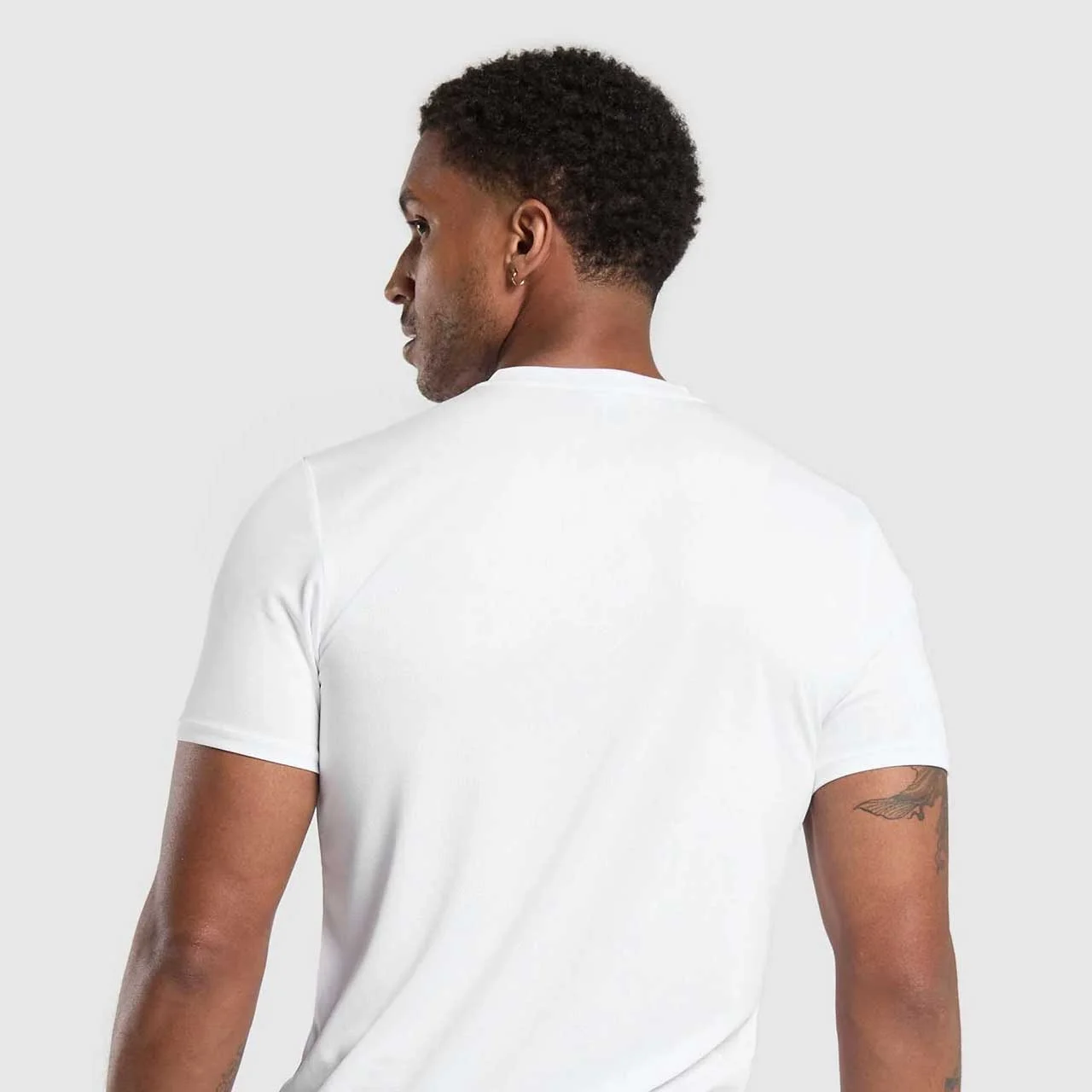The cotton-blend fabric carries enough density to prevent see-through issues common with white tees, while remaining breathable for everyday wear. It maintains structure through the torso without the heaviness of premium-weight pima cotton.